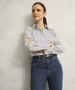 Hobbs Women’s Ivory Beauford Cotton Stripe Polo Knitted Jumper | Cream Navy