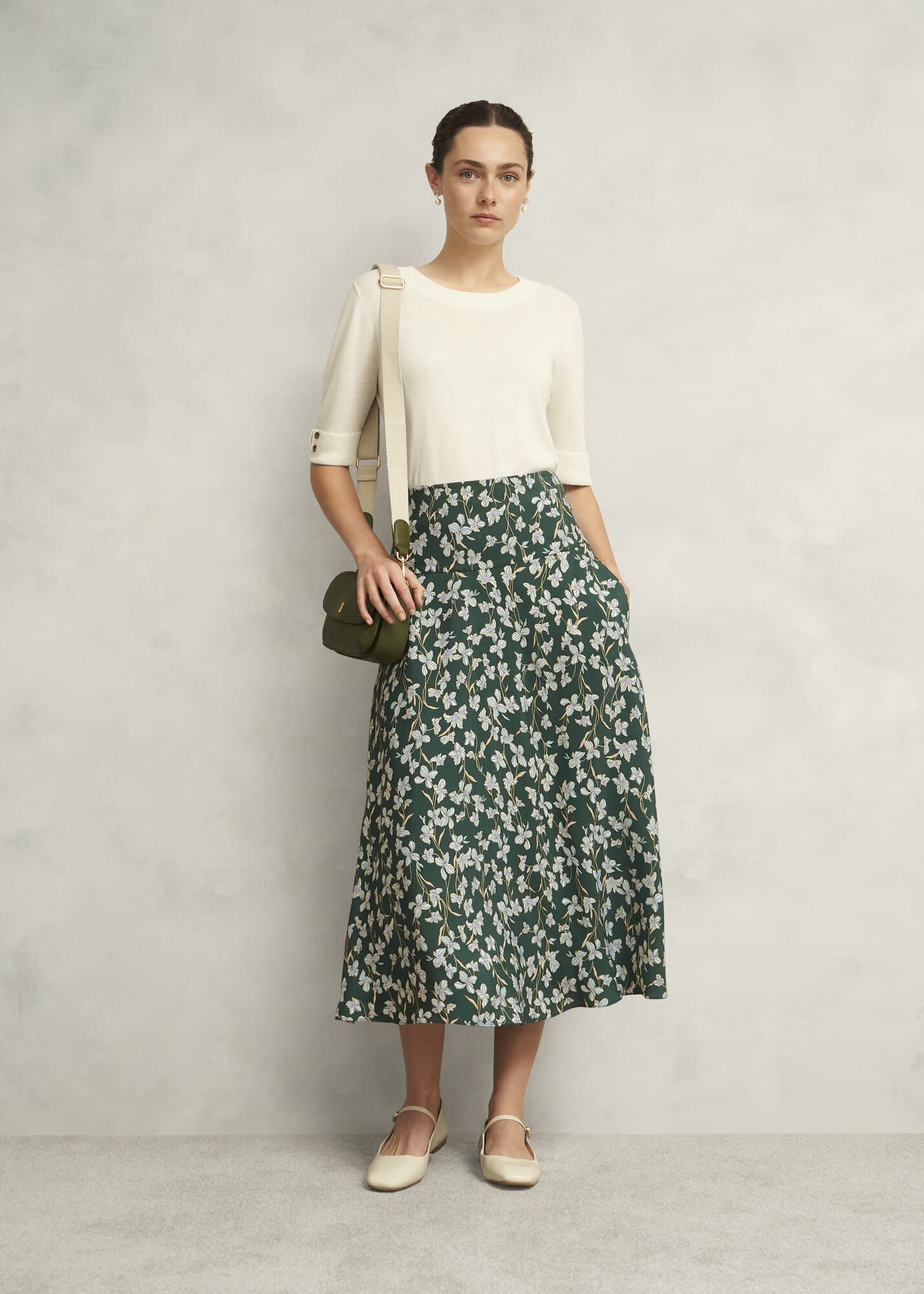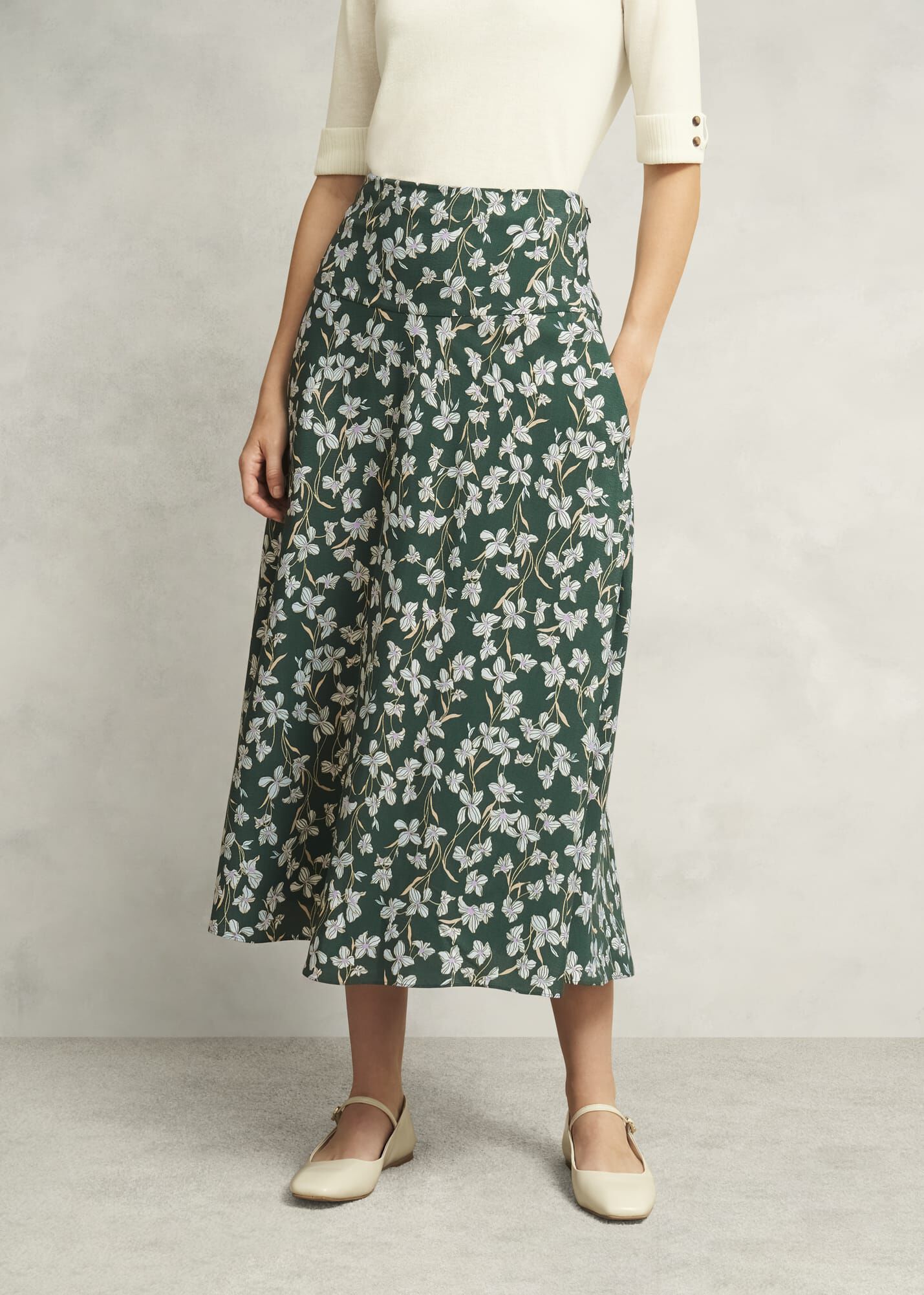 Hobbs Women’s Dark Green Floral Kiara Midi Skirt | Green Multi