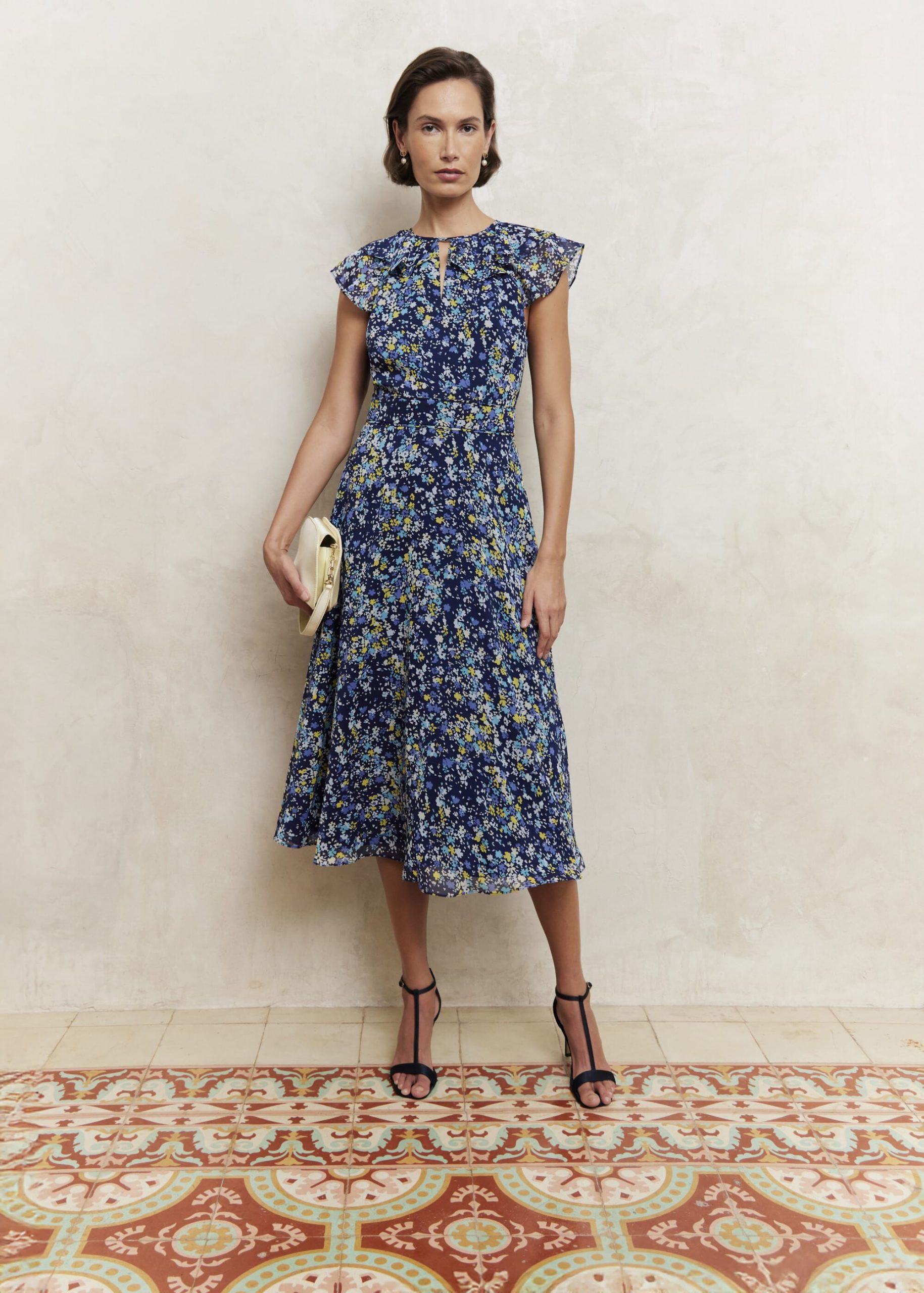 A transeasonal style for occasions throughout the year, the Dawn dress hallmarks femininity through fluttery details and ditsy print.