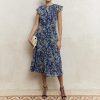 A transeasonal style for occasions throughout the year, the Dawn dress hallmarks femininity through fluttery details and ditsy print.