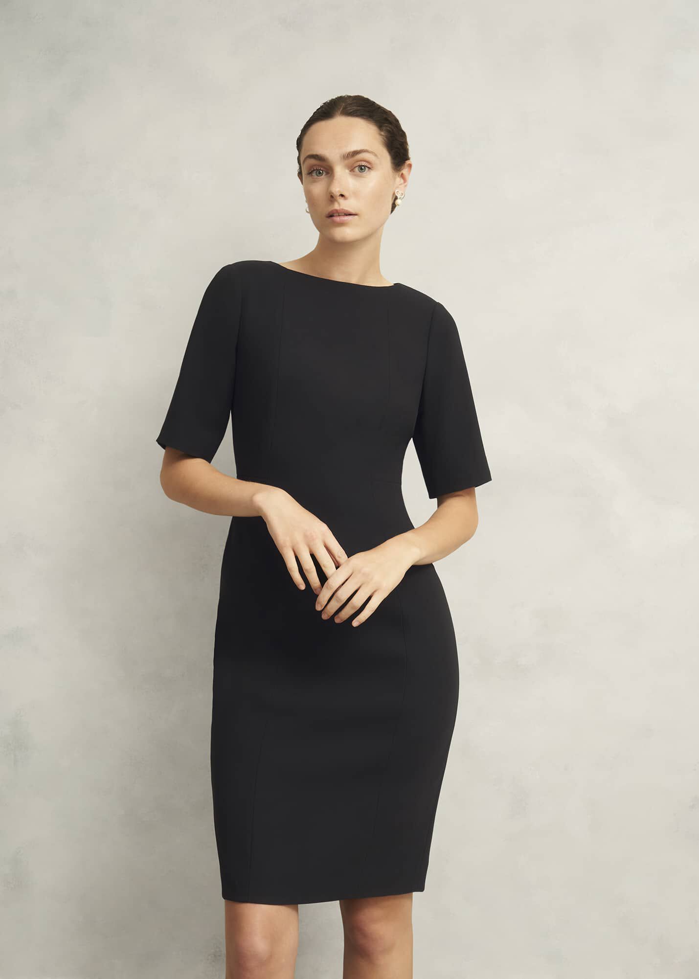 Tailored in premium crepe with a waist-defining silhouette, master effortless workday style with the sleeved Rae dress.