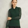 Jersey, with an elegant twist: the Ashley top serves day-to-night allure with a feminine fit and sheer sleeves.