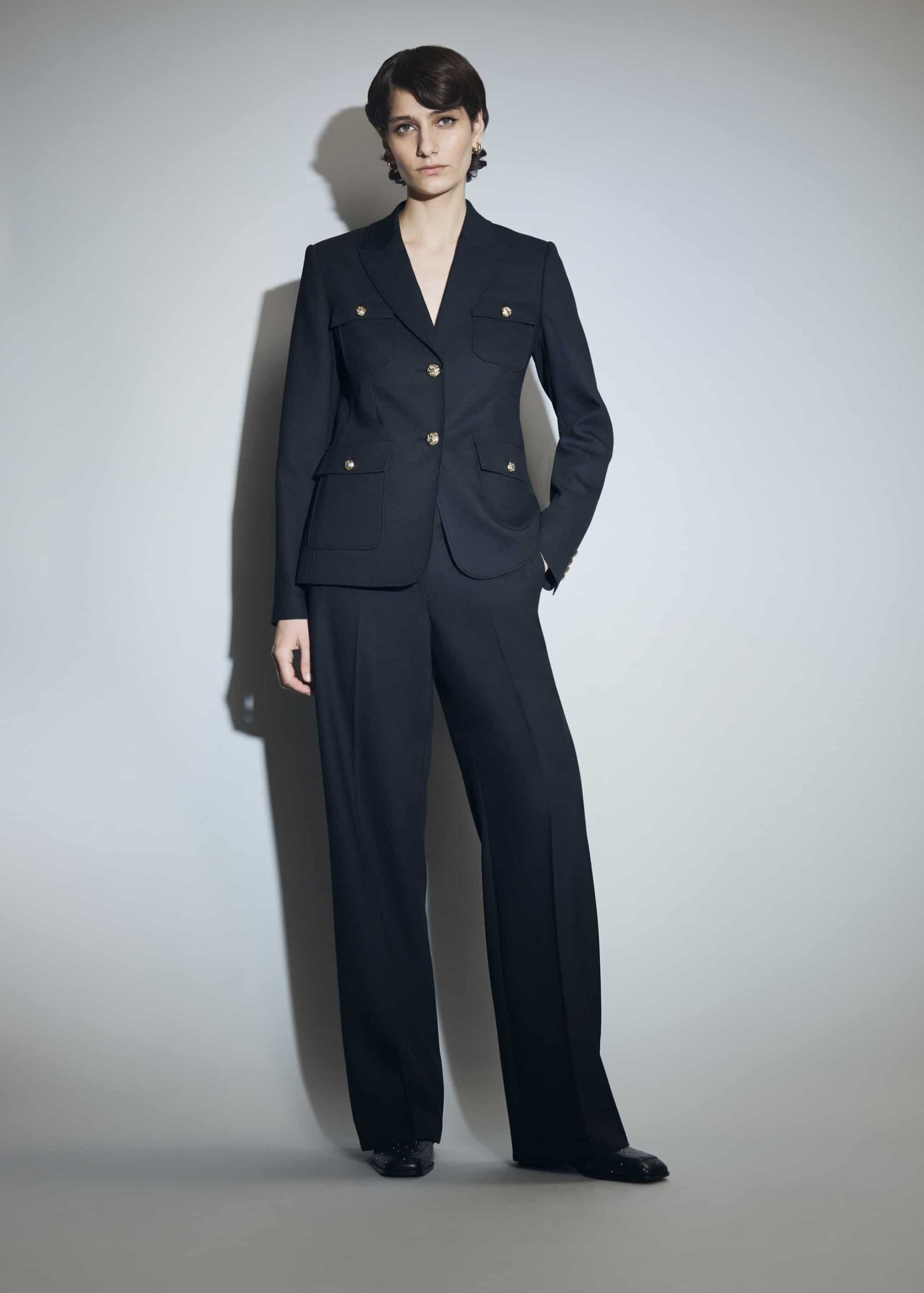 Sartorial, stylish, streamlined. Tailored in a wide leg cut with utility-inspired gold buttons, the Highclere trousers exude confidence into every outfit.