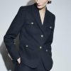 - Collared neckline and notch lapels