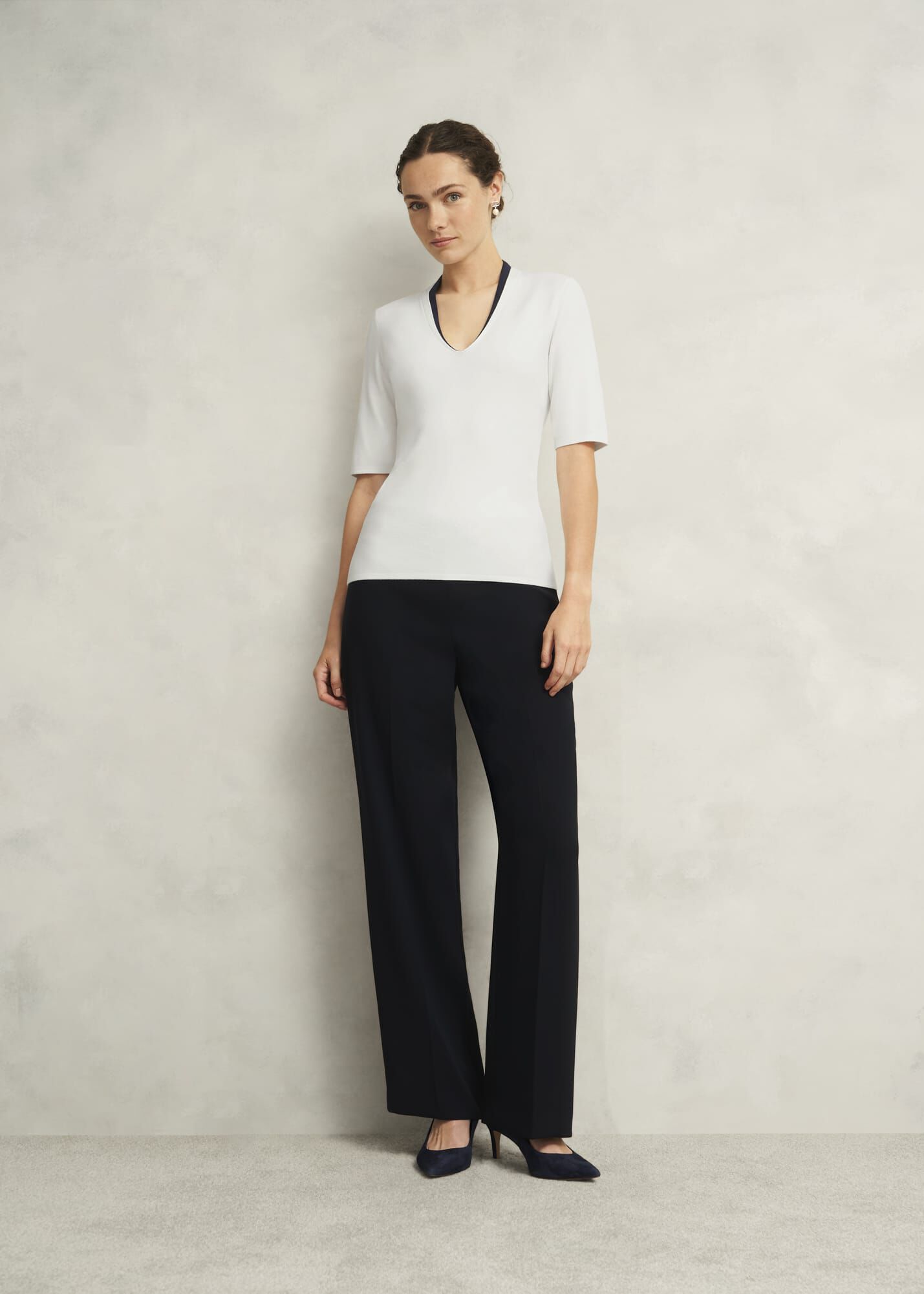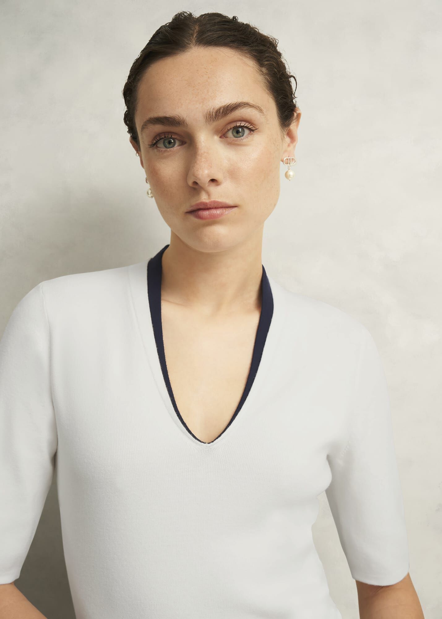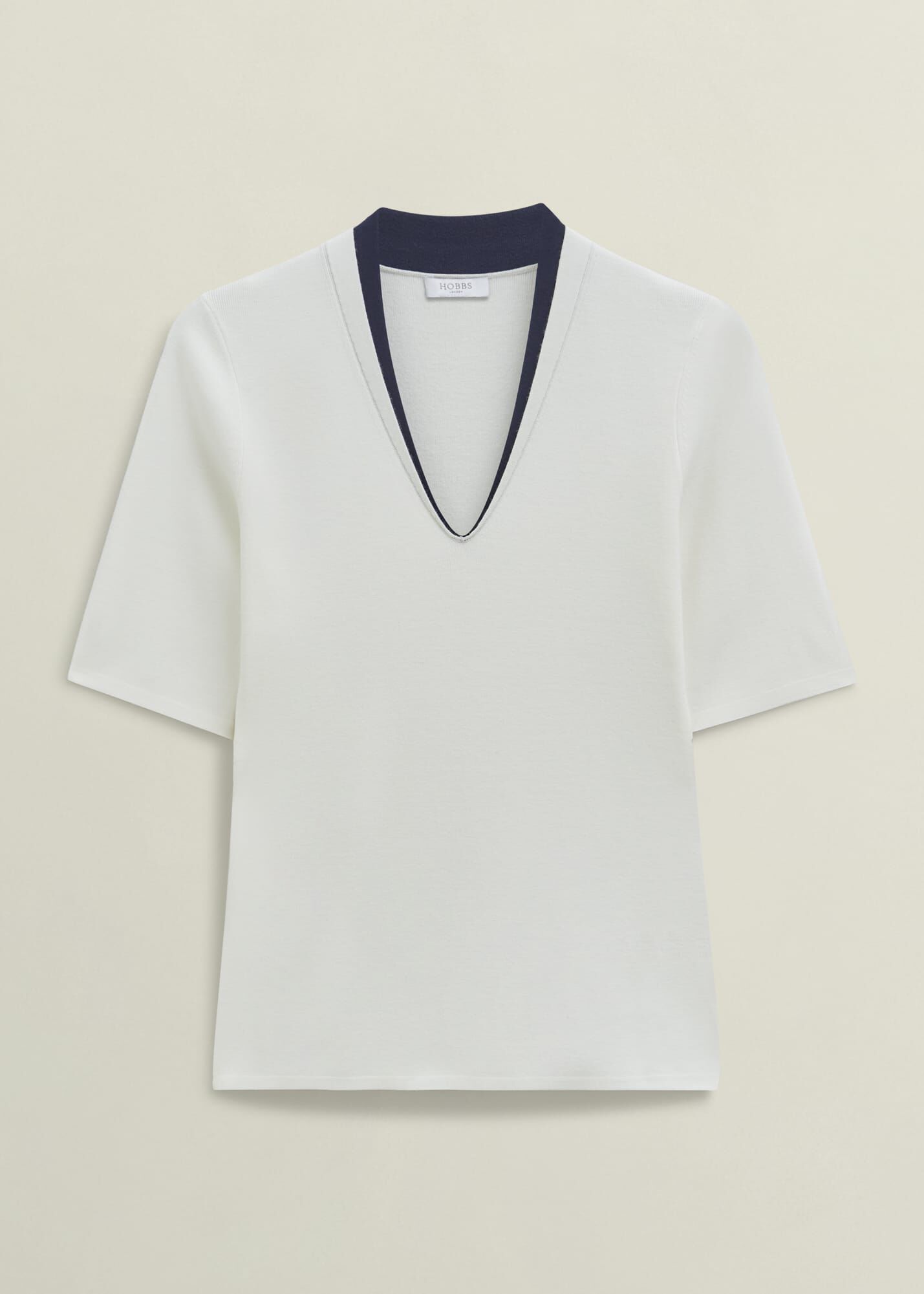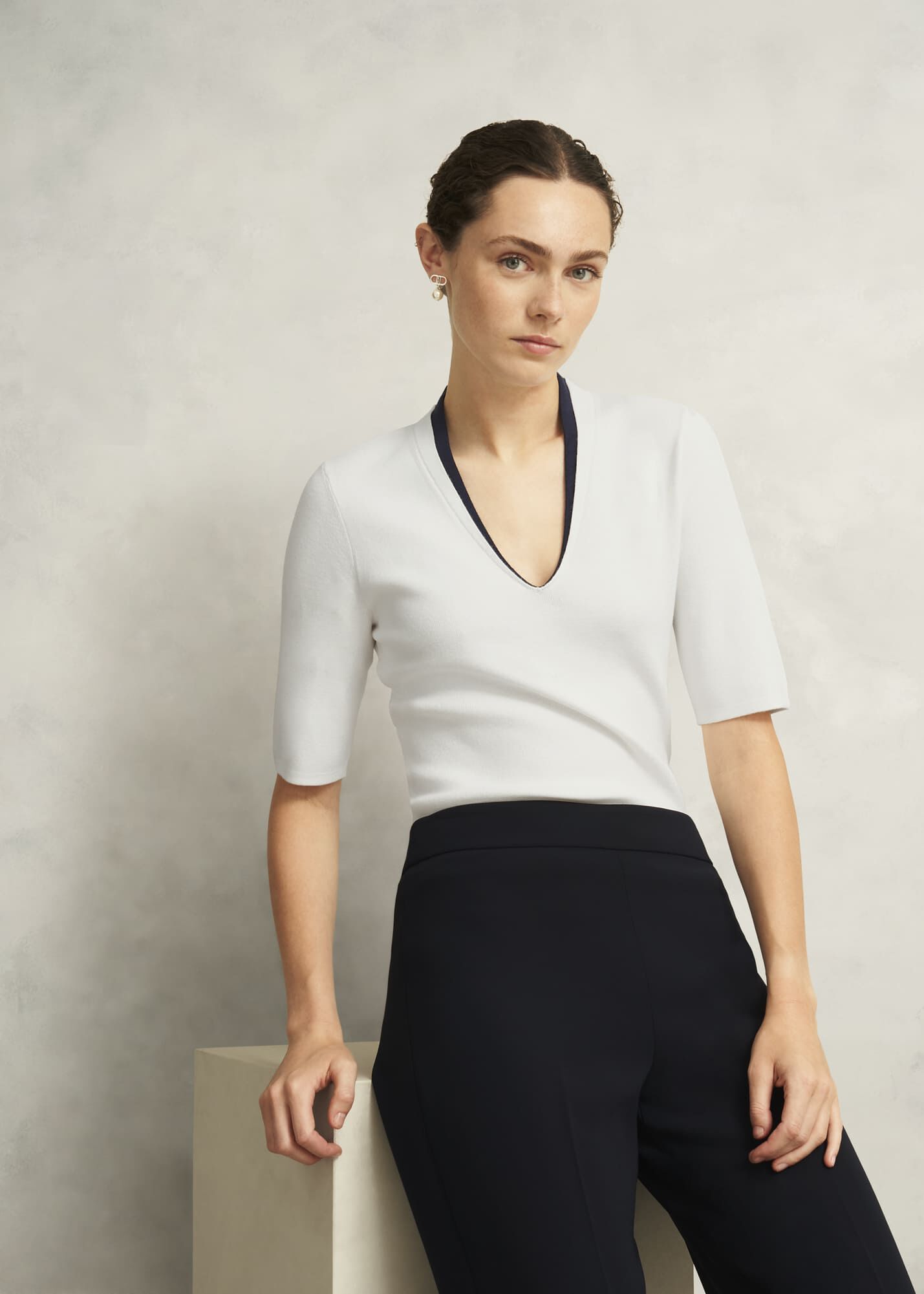 Made to modernise your knitwear collection, the Scarlett top fuses a short sleeve cut with a contemporary two-tone neckline.